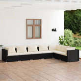 vidaXL 7 Piece Patio Lounge Set with Cushions Poly Rattan Black