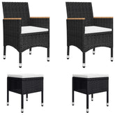 This outdoor table is made of solid acacia wood, making it sturdy and stable. The oil-finished surface also makes the table easy to clean with a damp cloth. Additionally, the curved legs contribute to its stylish design. Featuring a steel frame covered with weather-resistant PE rattan, these dining chairs are sturdy and easy to clean. The thickly padded cushions add comfort in your lounging time.